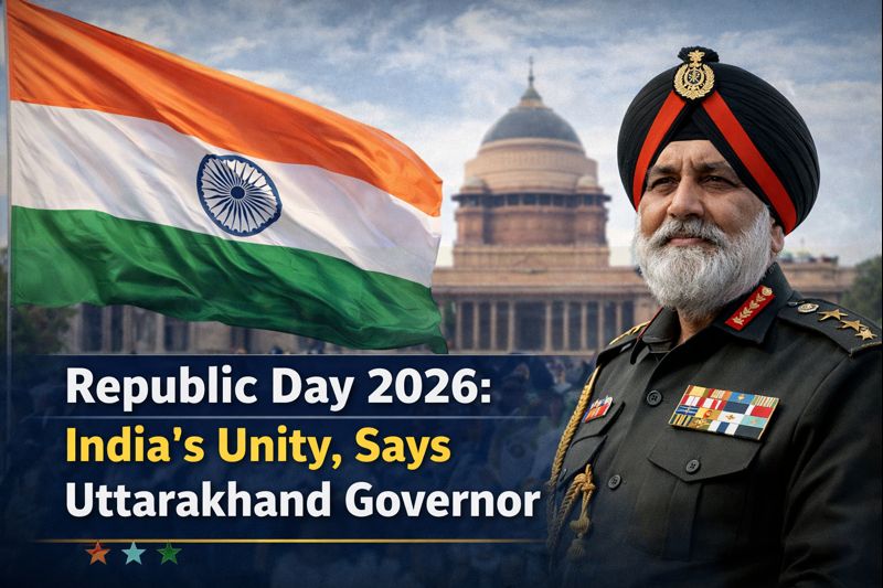 As India celebrates its 77th Republic Day, Uttarakhand Governor Lt Gen Gurmit Singh (Retd) said the day reminds citizens that India’s unity comes from shared constitutional values. He described Republic Day as a time to reflect on the balance between rights and duties, freedom and responsibility, and authority and accountability.
